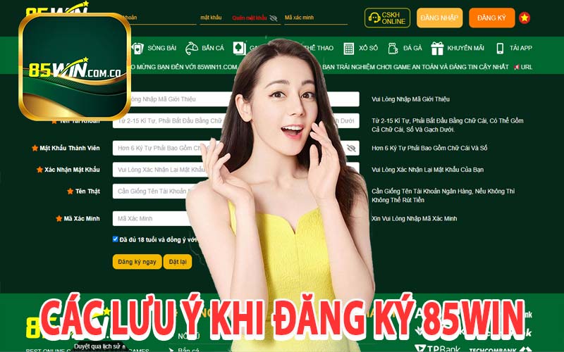 Nhớ rằng, việc đăng ký tài khoản là bước quan trọng để tham gia trải nghiệm giải trí tại 85Win. Tuân thủ những lưu ý trên sẽ giúp bạn tận hưởng trò chơi một cách an toàn và thú vị nhất. Chúc bạn có những giờ phút giải trí trên 85Win thật thăng hoa!